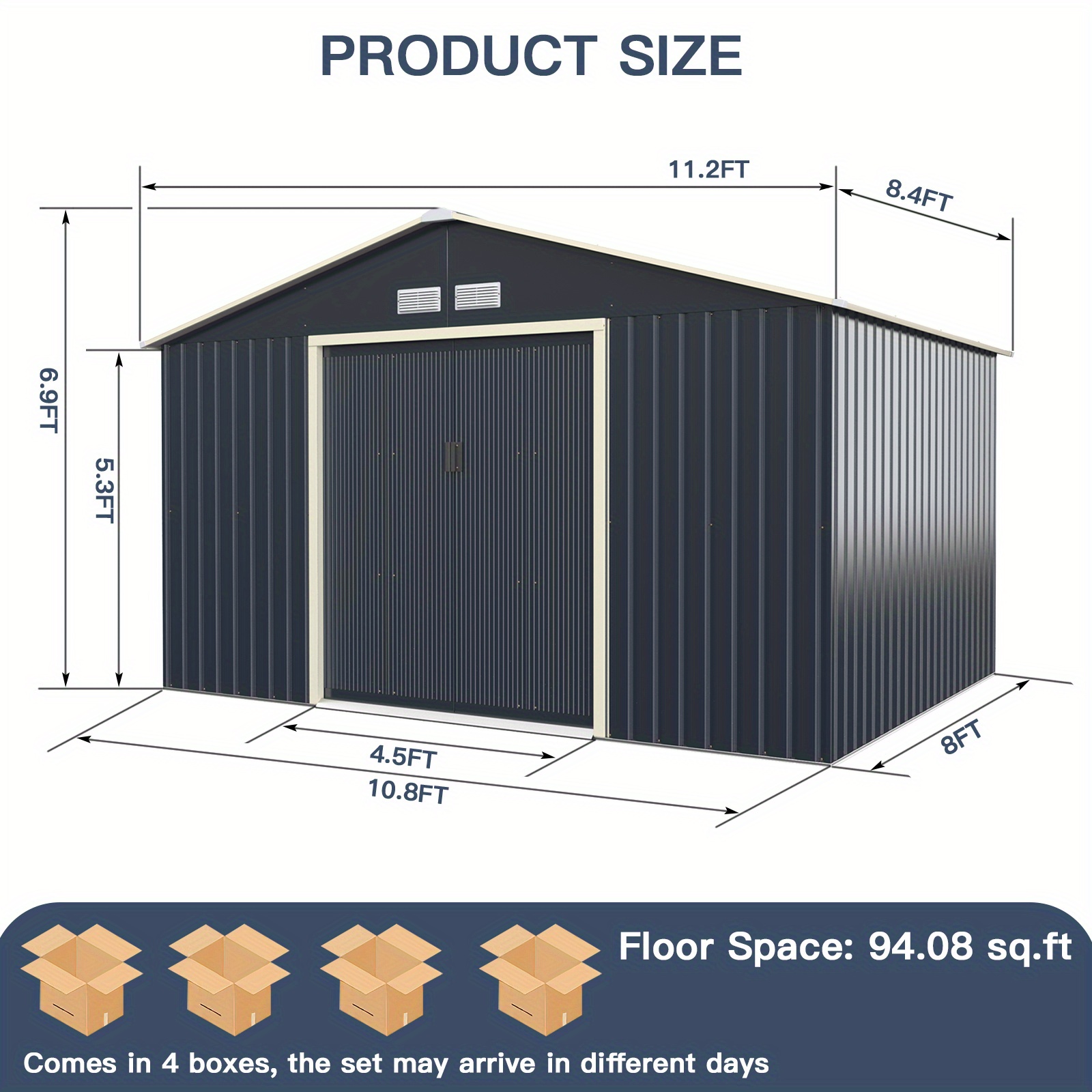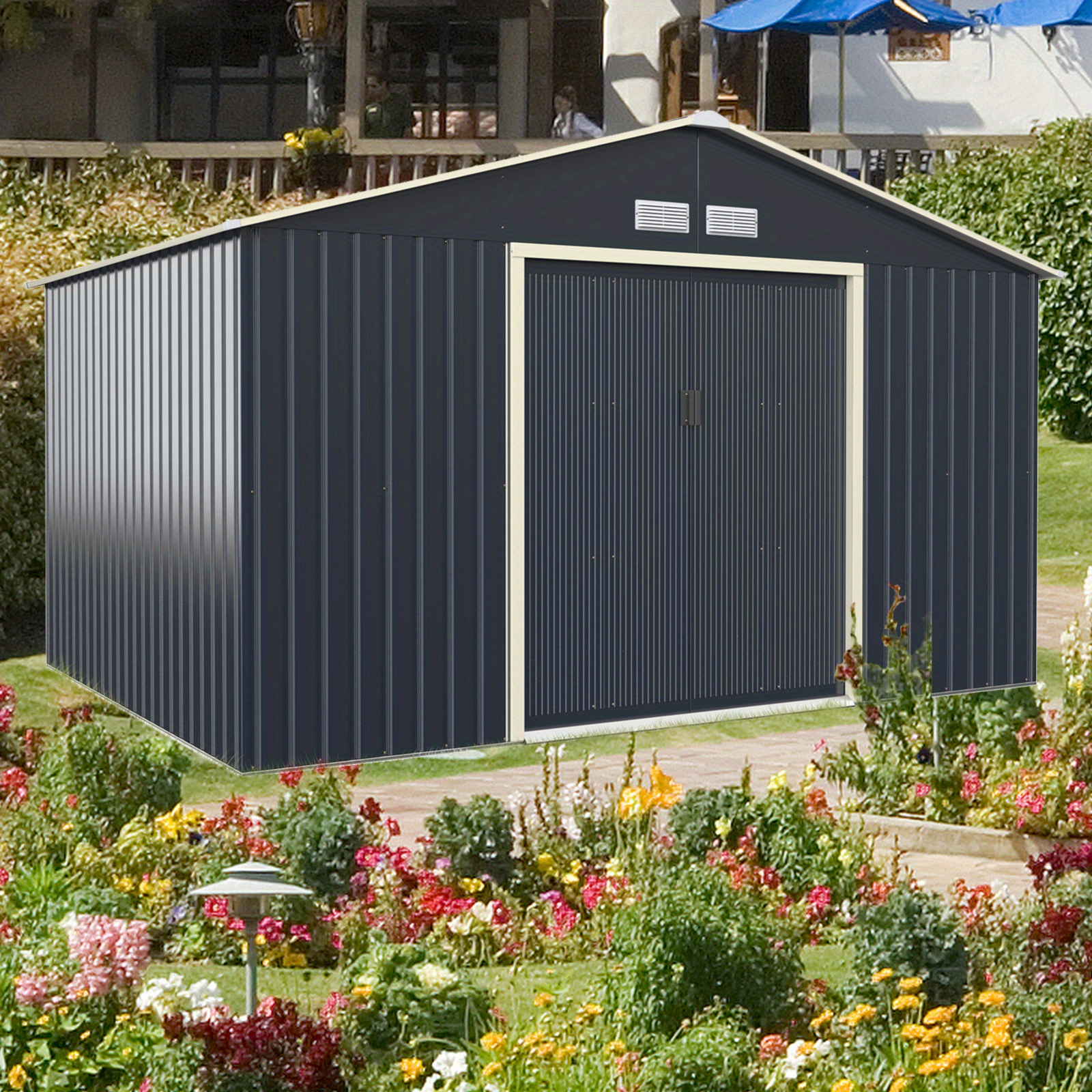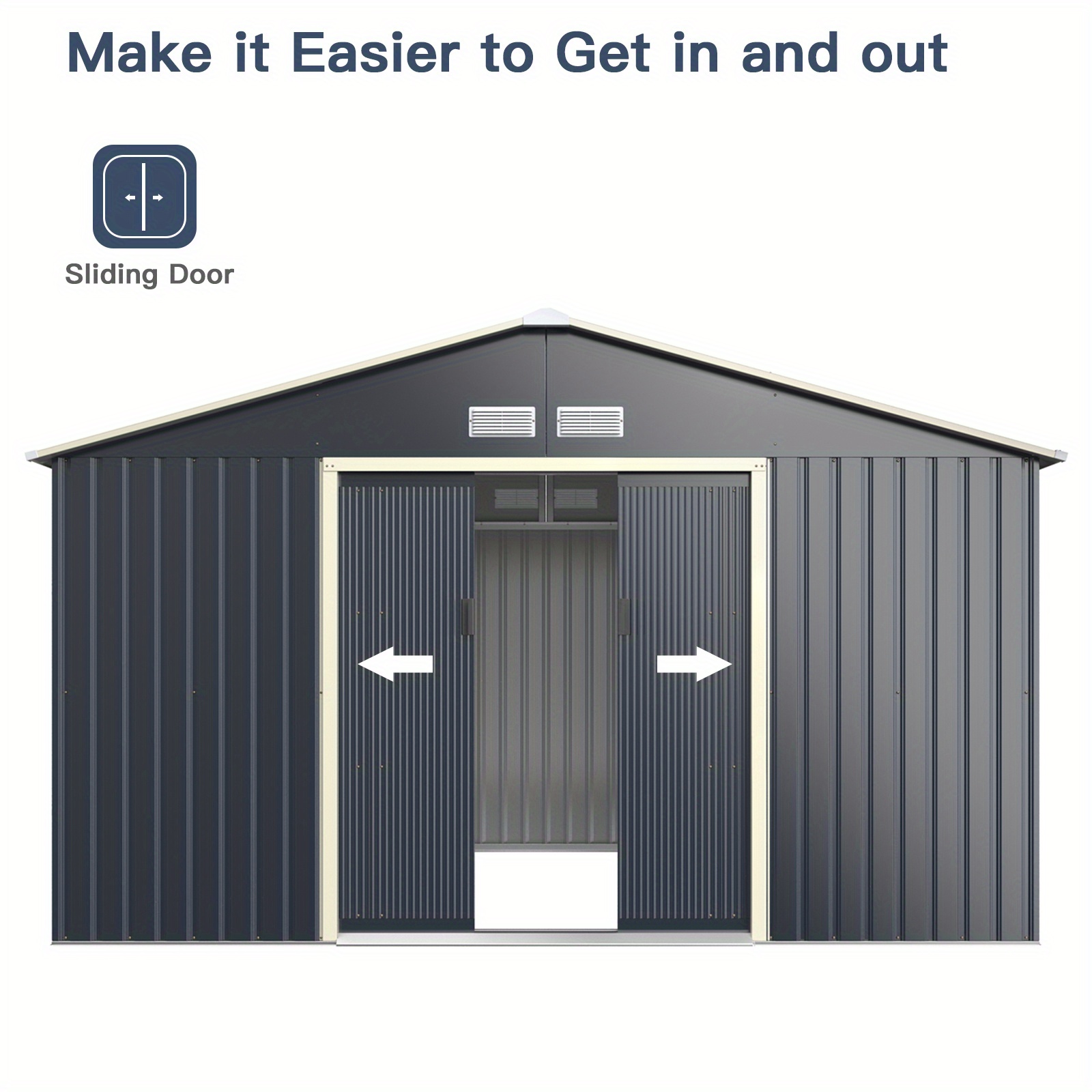 11′ x 8′ Outdoor Storage Shed Large Utility Storage House with Sliding Door Gray