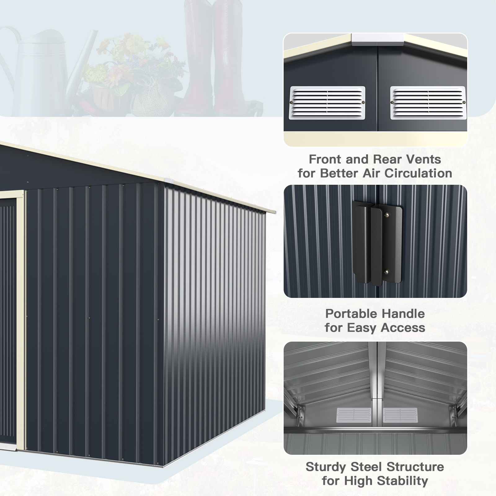 Be the first to review “11′ x 8′ Outdoor Storage Shed Large Utility Storage House with Sliding Door Gray” Cancel reply
