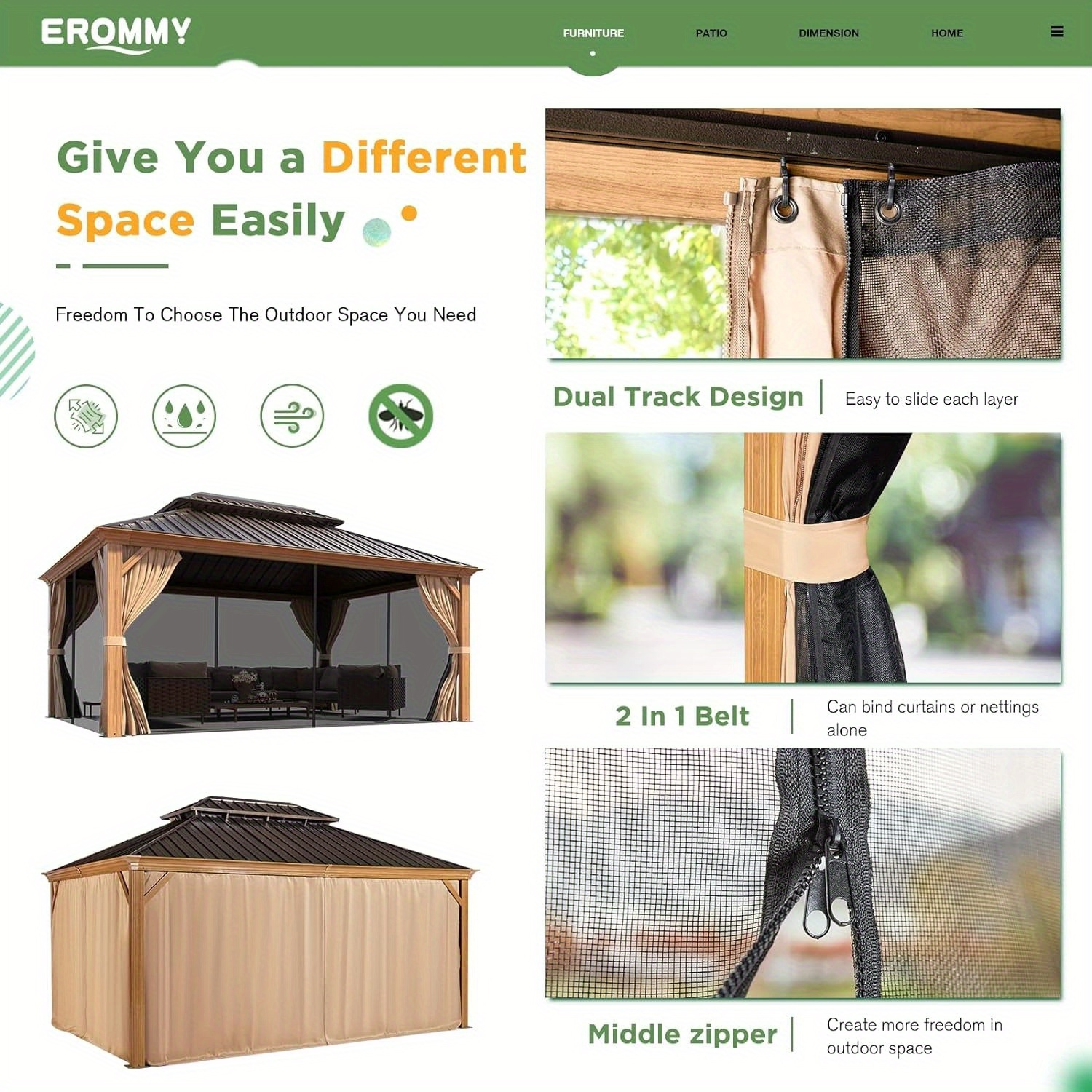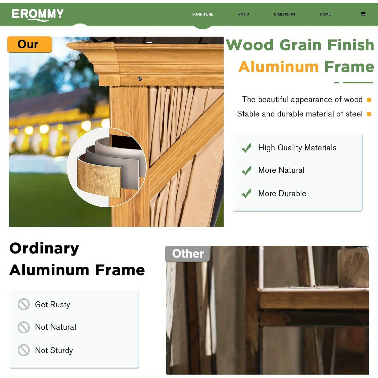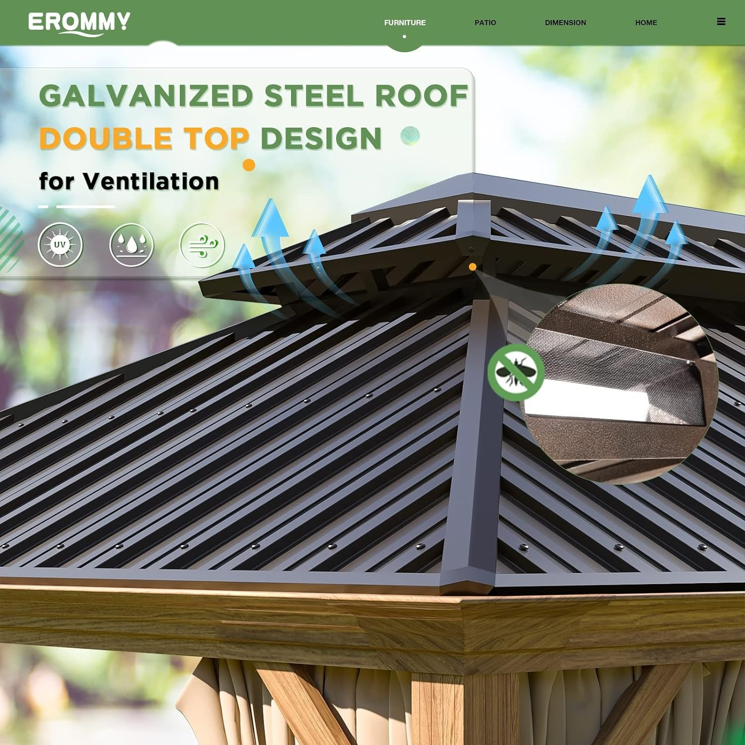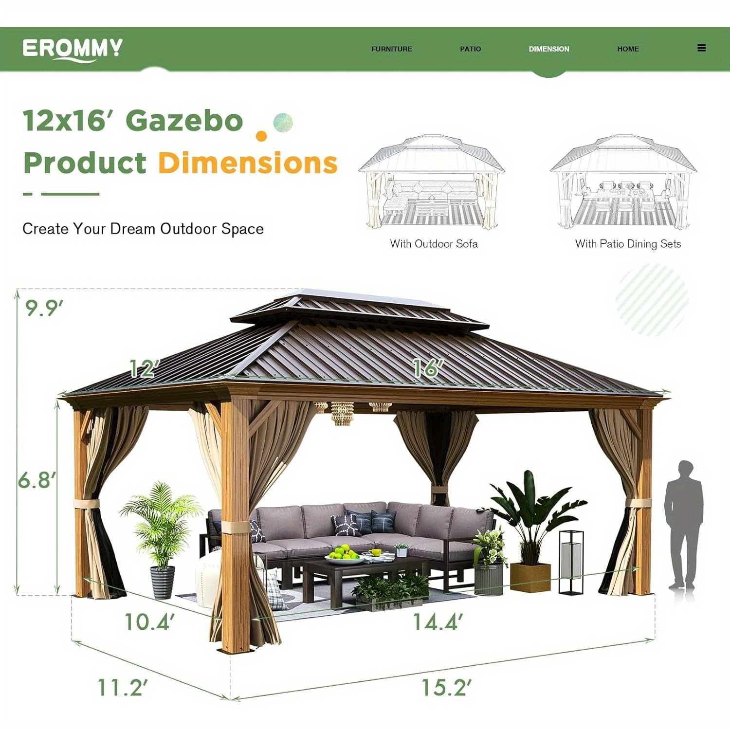 12’x16′ Hardtop Gazebo, Wooden Finish Coated Aluminum Frame Gazebo with Galvanized Steel Roof, Outdoor Metal Gazebos with Curtains and Nettings for Patio, Backyard, Deck and Lawns