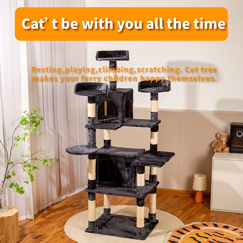 1pc Cat Tree, Indoor Cat Tower Furniture, Plush Cat Tree With Perchs, Condo, Jumping Platforms, Stable Wear-resistant Cat Scratching Posts For Indoor Cats
