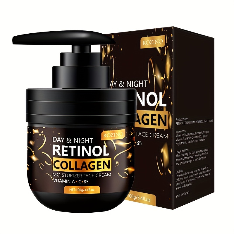 3.53oz Retinol Collagen Day And Night Moisturizer Face Cream, Firming And Lifting Facial Skin, Hydrating More Tender, Safe And Reliable, Making Face Silky, Delicate And Tender, Improving And Revitalizing Facial Skin