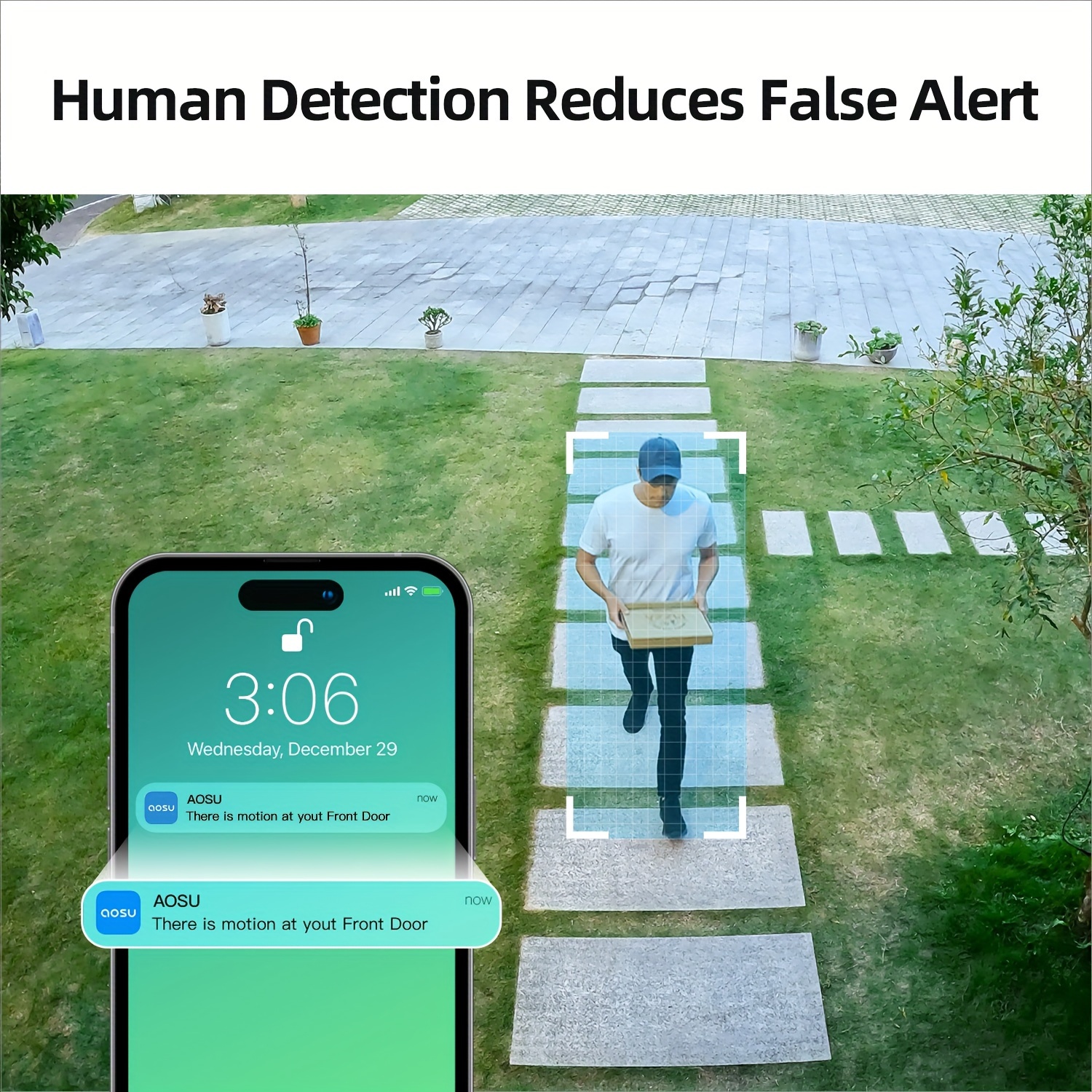 AOSU Solar Security Cameras Wireless Outdoor, 2K QHD Home Security System, 2 Cameras Kit With 166° Ultra-Wide View, Forever Power, Spotlight Camera, 32G Local Storage, No Monthly Fee