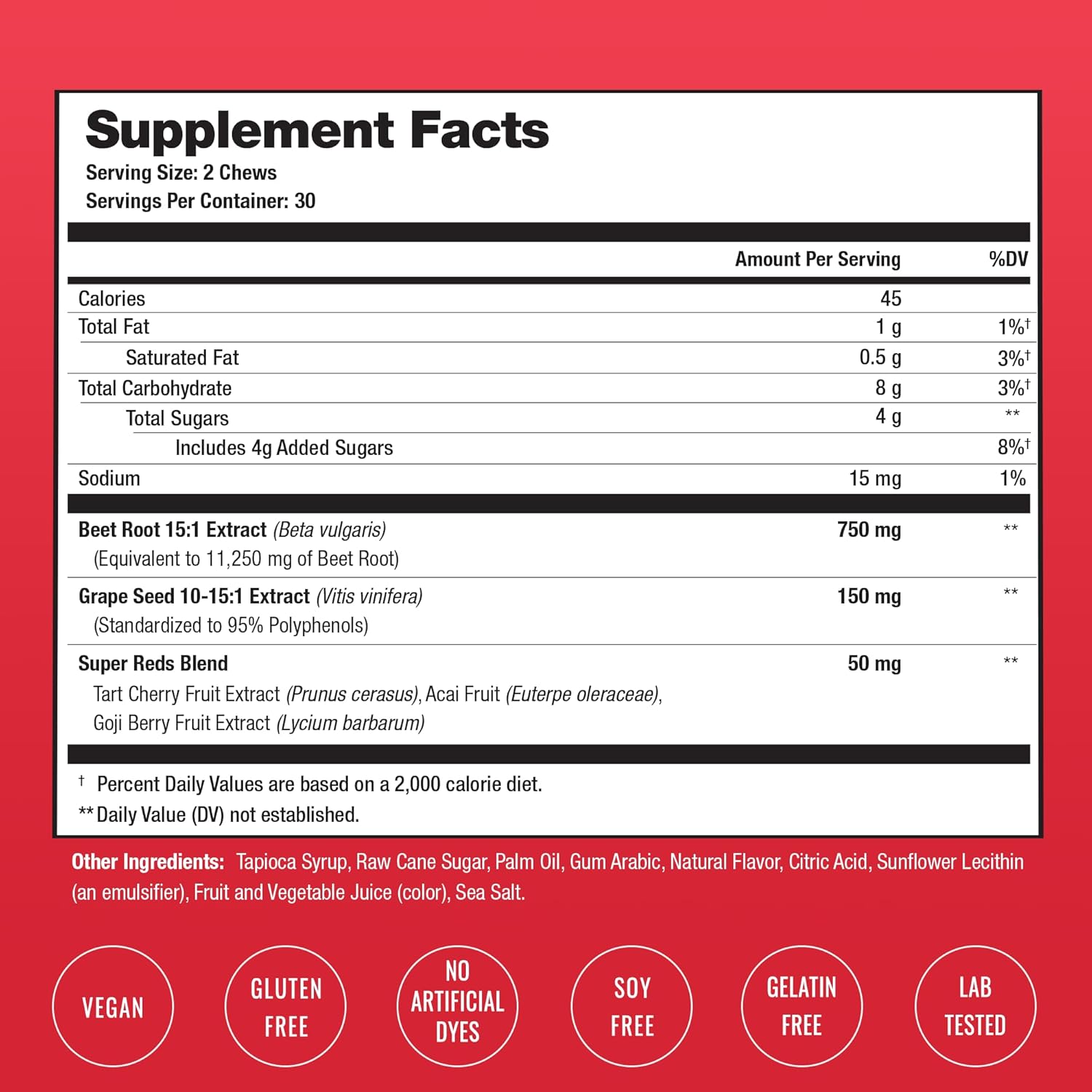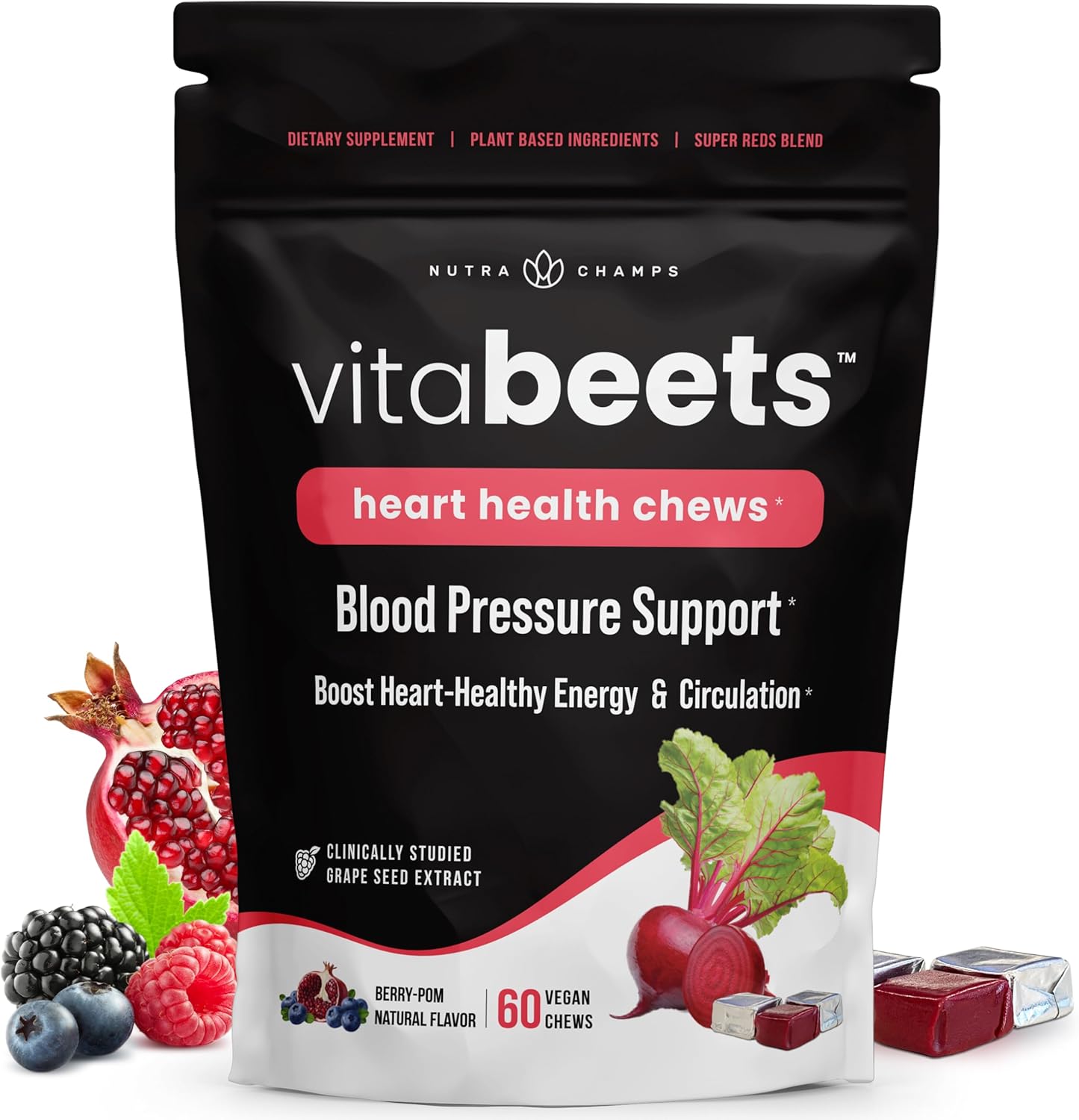 Beet Chews – Blood Pressure Support – Potent 750mg Beet Root Extract – Heart Chews – Blood Flow & Circulation Support Supplement – Super Reds Blend – Beet Root Gummies Alternative – 60 Soft Chews