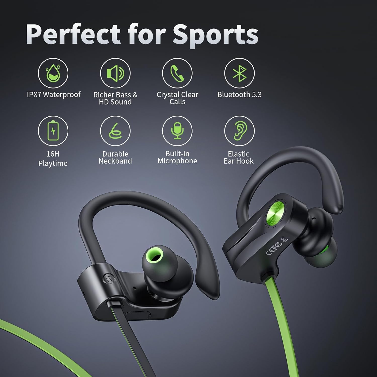 Long-lasting 16-hour Battery Life: With a durable and long-lasting battery, these wireless headphones can provide up to 16 hours of continuous music playback. This means that your can enjoy their favorite tunes or make important calls without worrying about running out of battery during your workout sessions. (Note: Please use the charging cable provided on the package)
