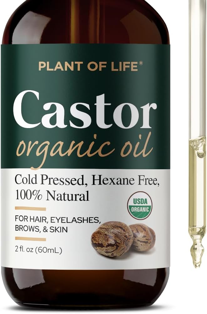 Castor Oil by Plant of Life – USDA Organic, 100% Pure, Cold-Pressed, Hexane-Free – Strengthen, Repair for Hair, Eyebrow, Eyelash – (2oz (60mL))