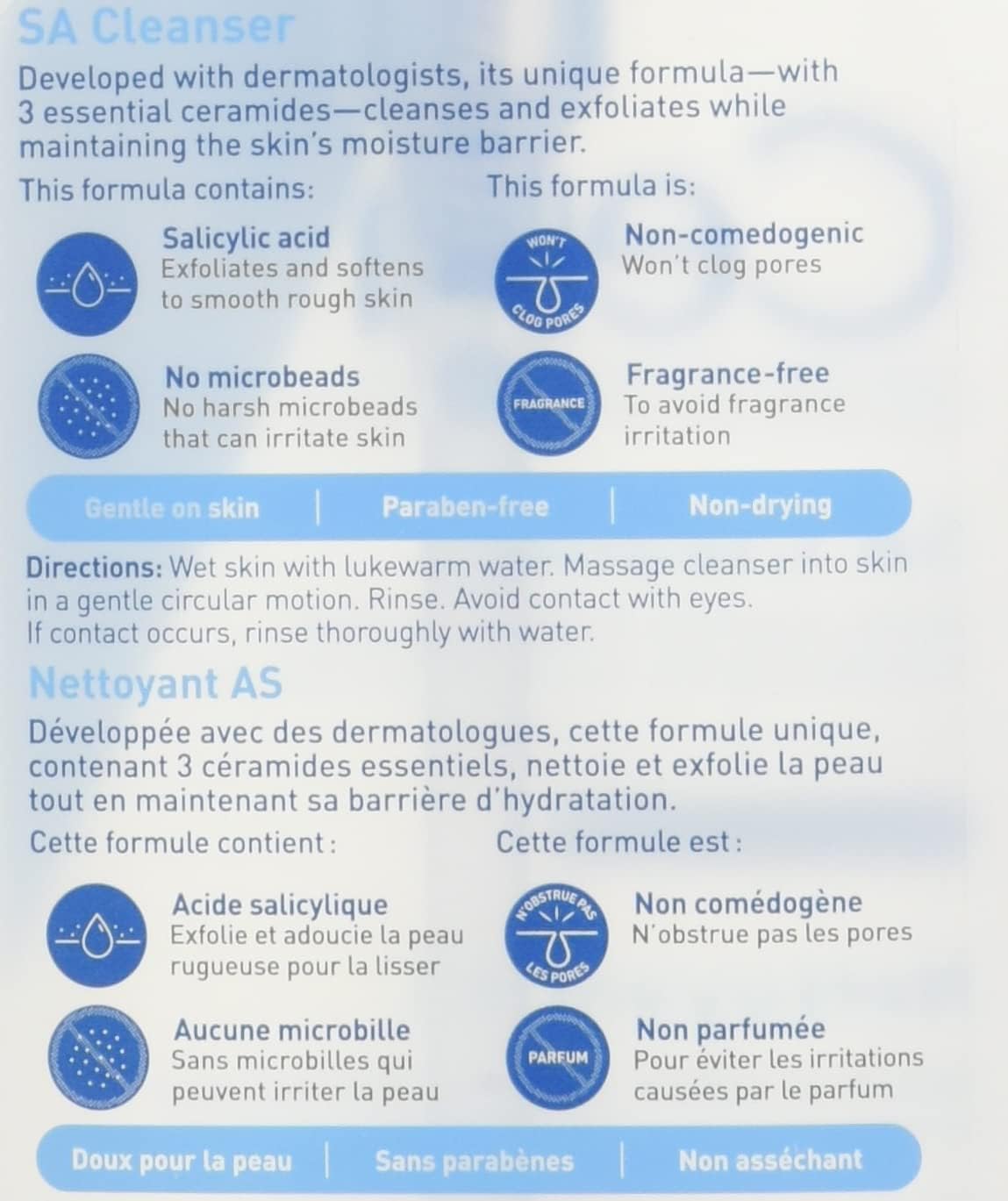 CeraVe SA Cleanser provides gentle, non-irritating exfoliation without harsh microbeads or grains that can scratch or injure the skin