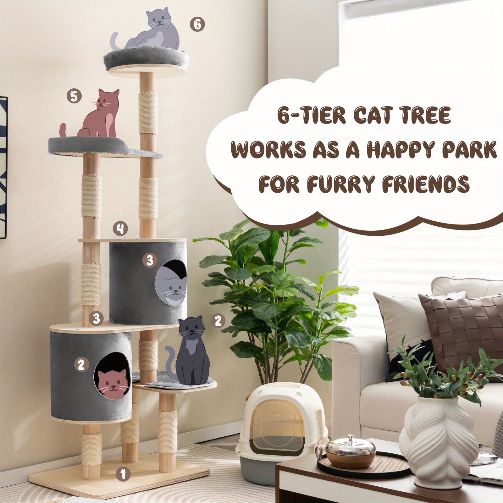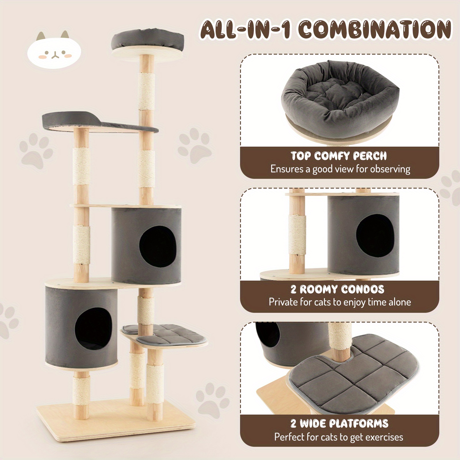 MULTIGOT 75″ Multi-layer Wooden Cat Tree Indoor Tower Activity Play Center w/ 2 Condos