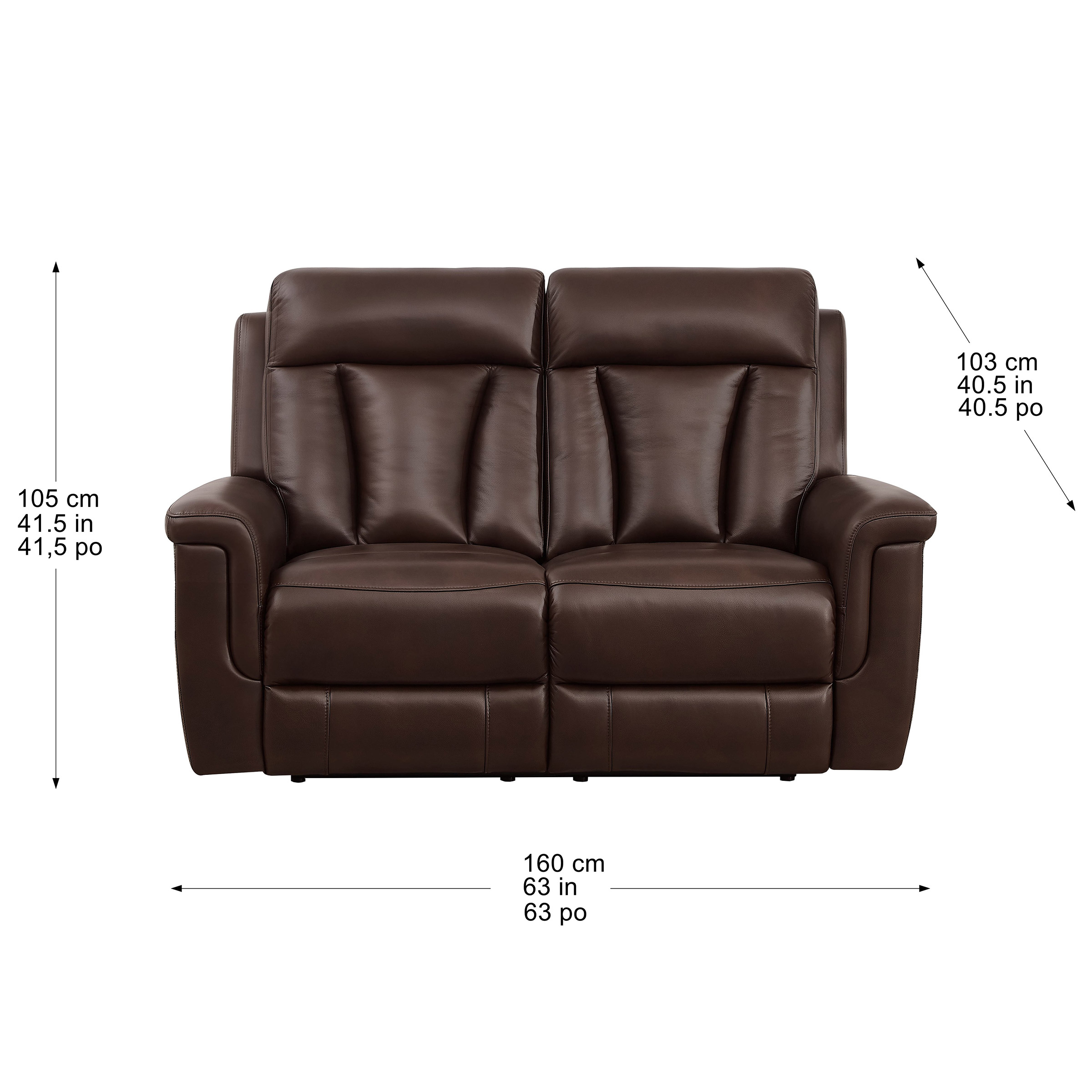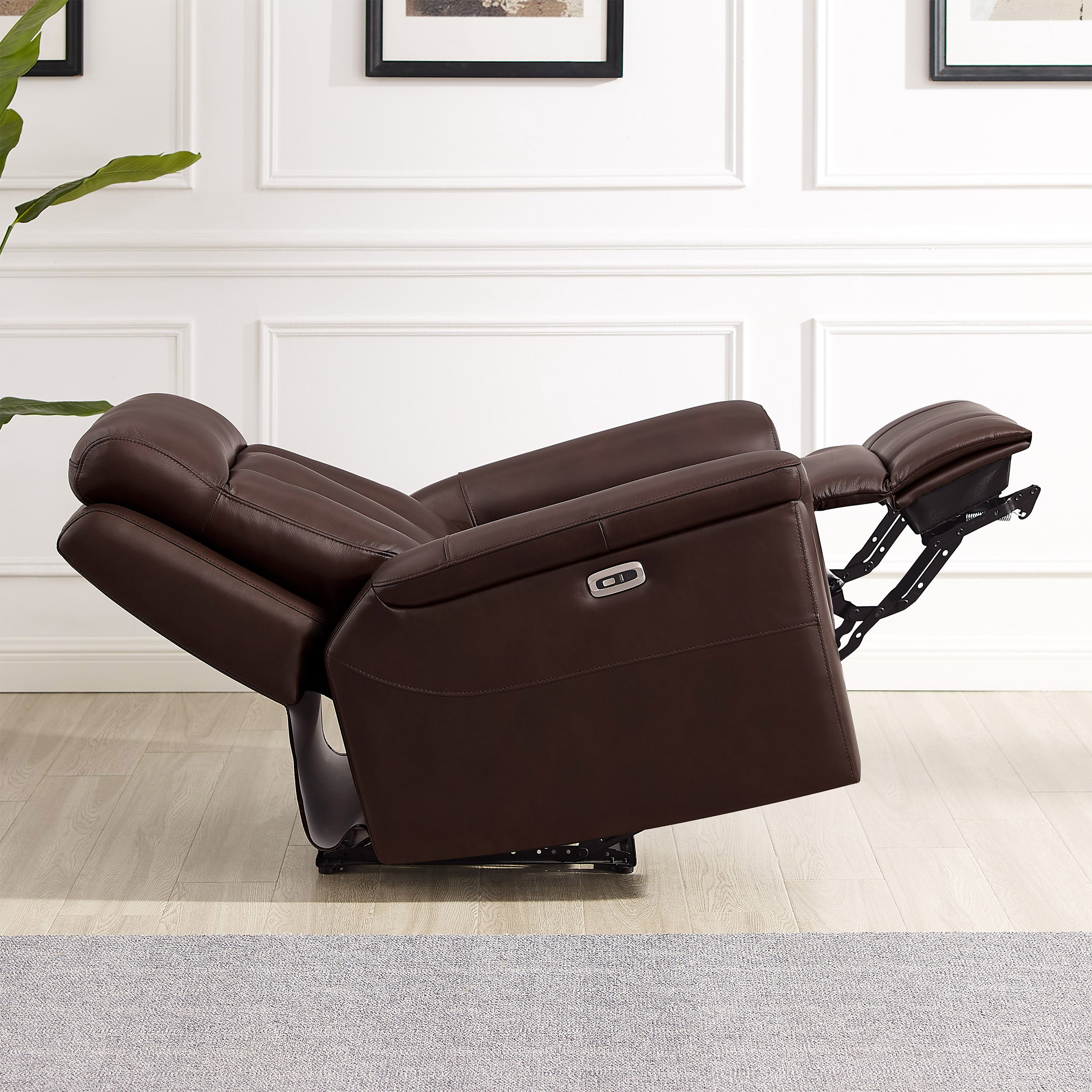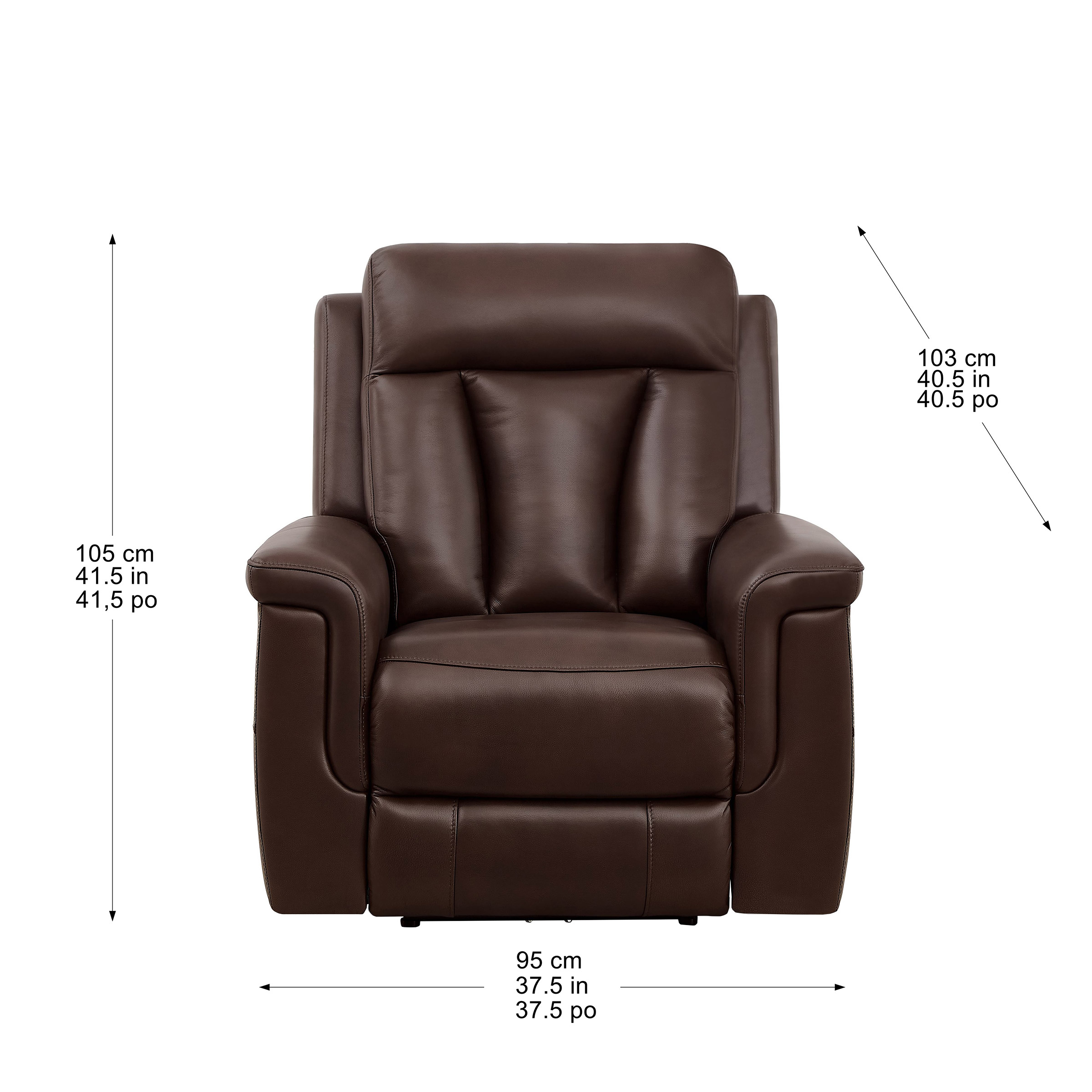 - Top grain leather on all seating areas, arms rests and footrests