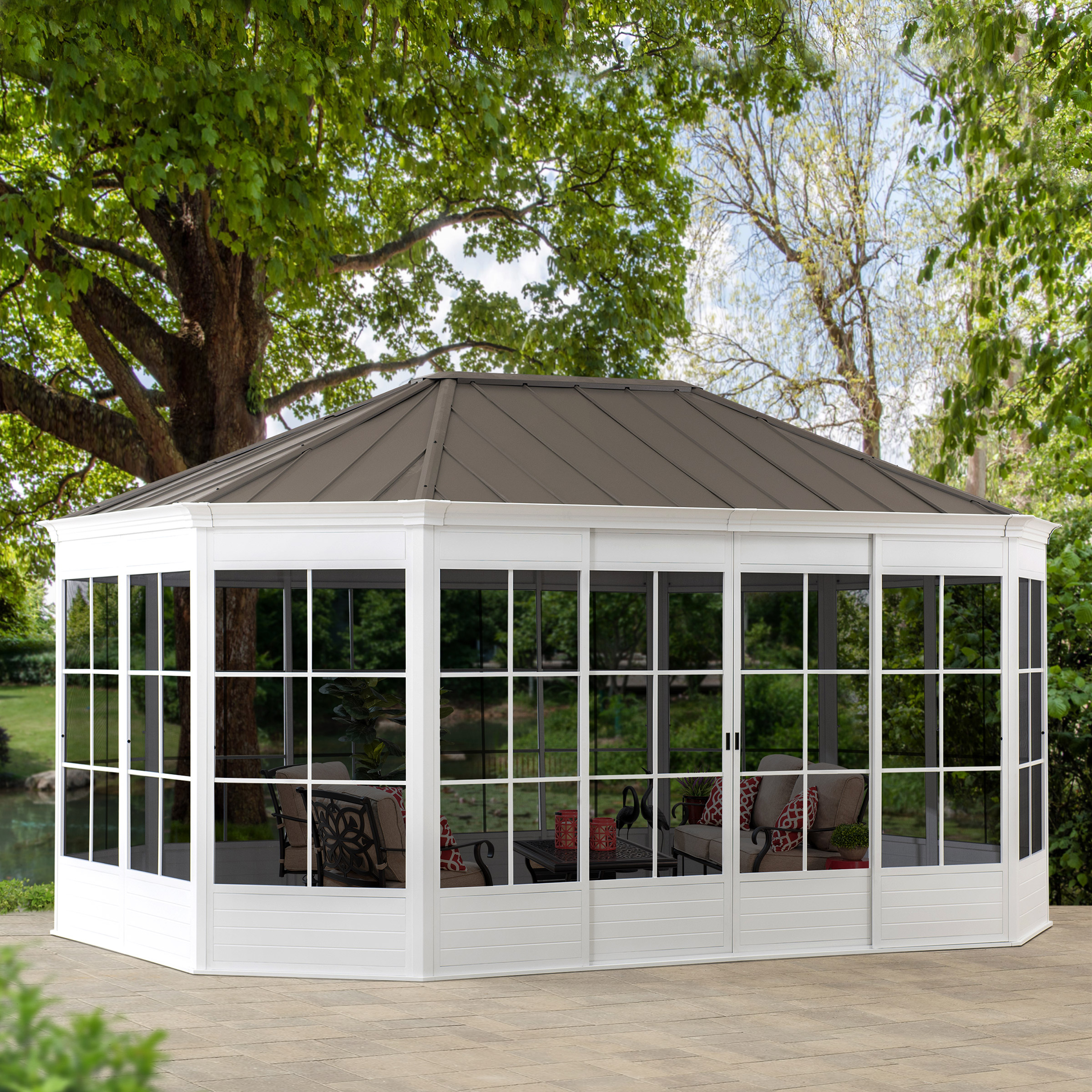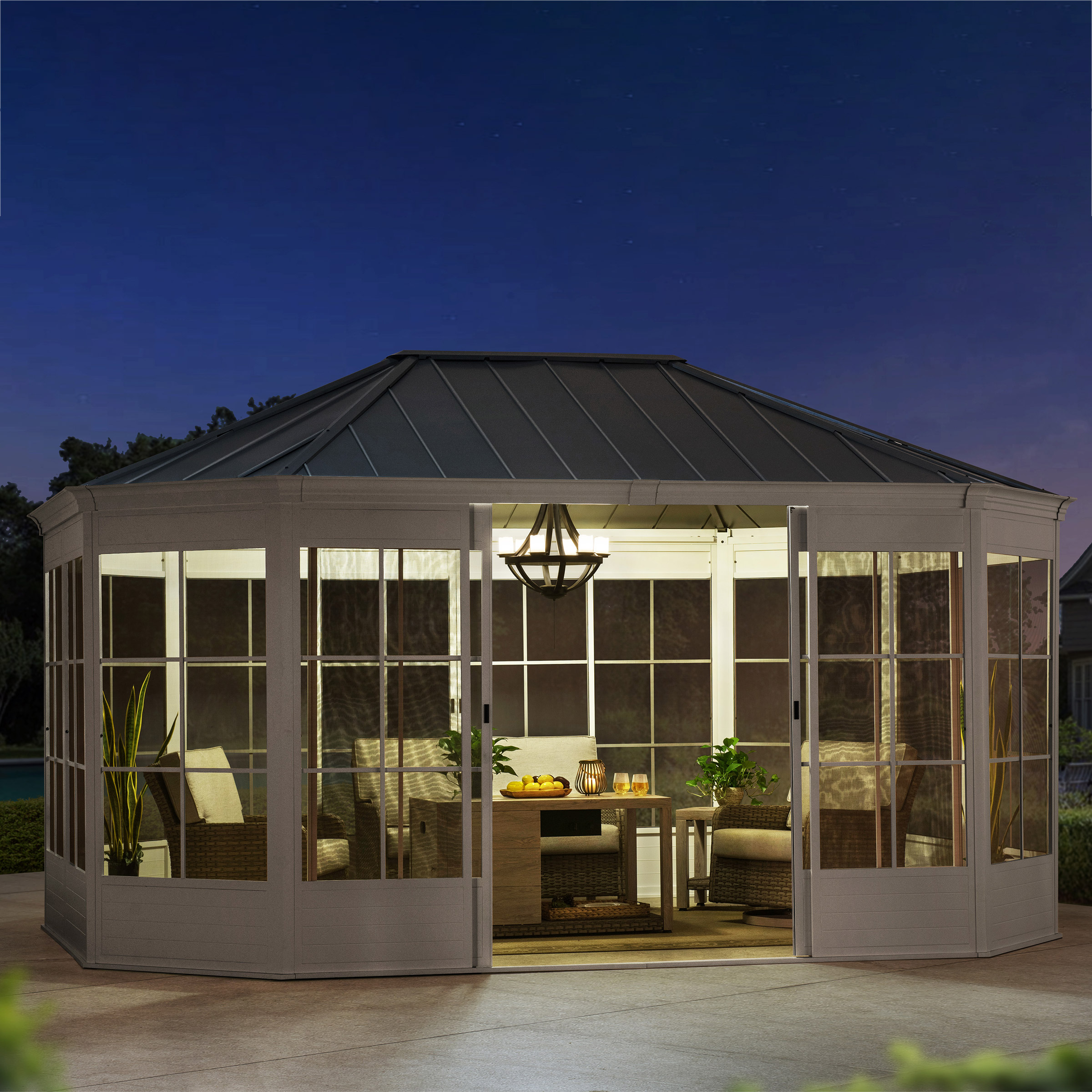 Sunjoy 12 ft. x 16 ft. Cape Blue Hardtop Screenhouse
